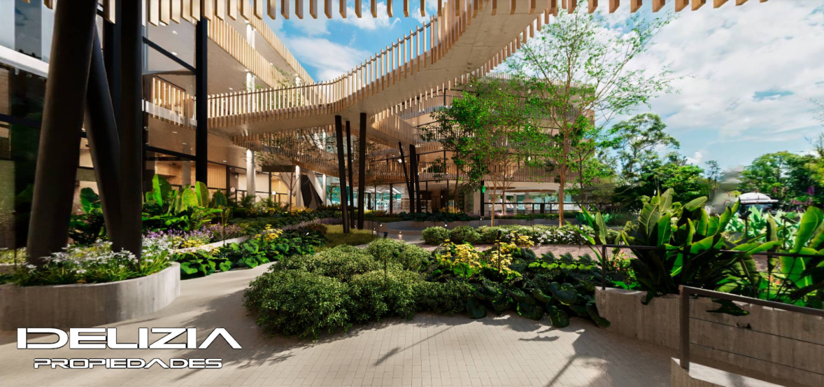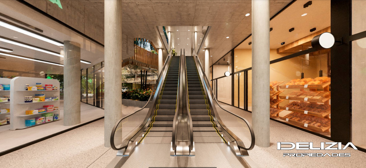ESCALA brinda la posibilidad de encontrar en un mismo sitio, los diferentes rubros y actividades de la vida cotidiana, y que sus clientes puedan hacer de sus compras un paseo placentero, sin desconectarse de las vistas arboladas que brinda Parque Leloir, ya que el Mall cuenta con 3 PLAZAS que fusionan con el bello entorno, una de ellas se ubica en el tercer nivel del Proyecto, ofreciendo vistas exclusivas al Pulmón verde que caracteriza Leloir.
